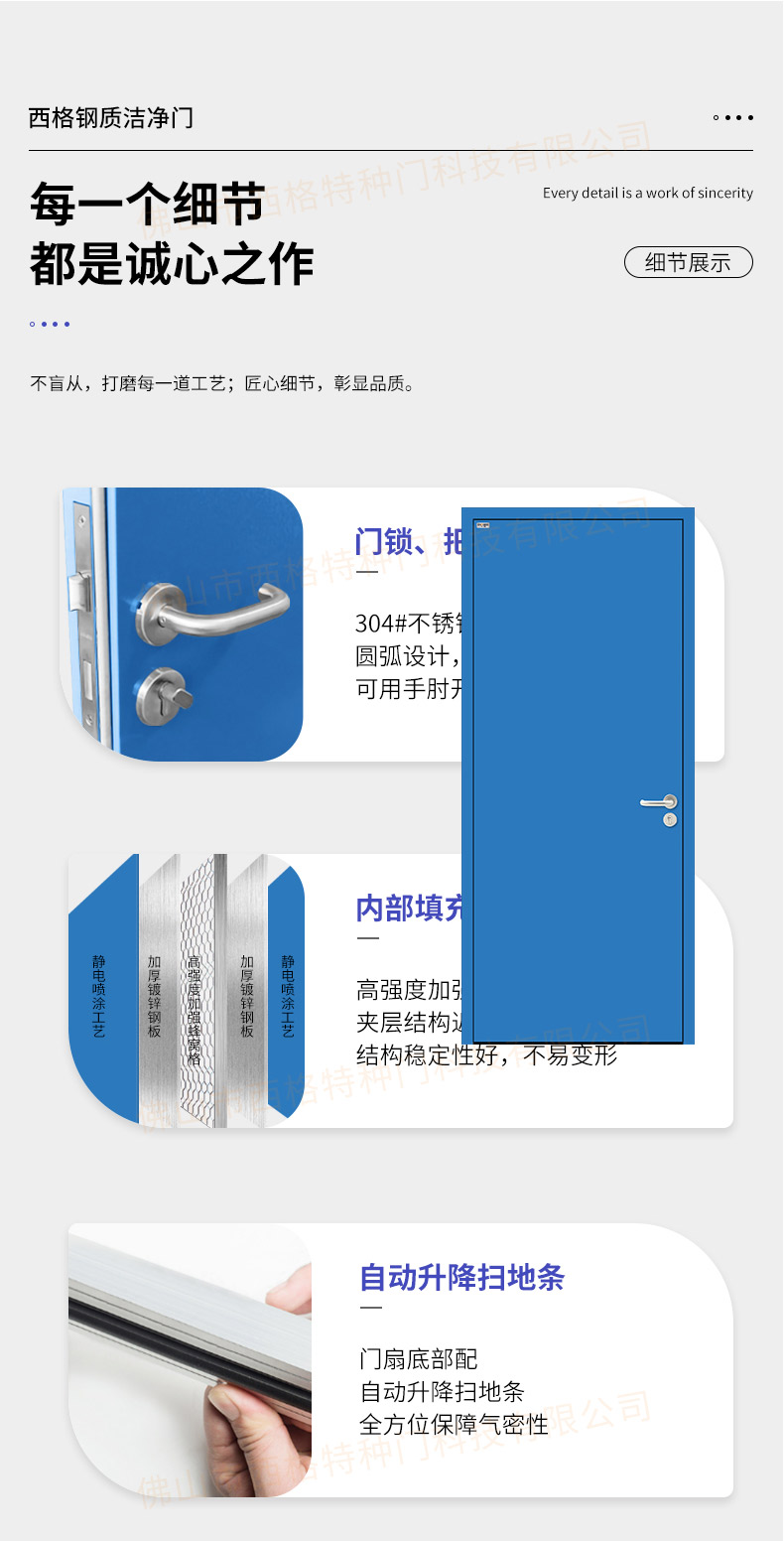 產品簡介:廣東西格,大型凈化門生產廠家,專用生產各類型凈化門,款式,視窗,材質厚度,均可定制。