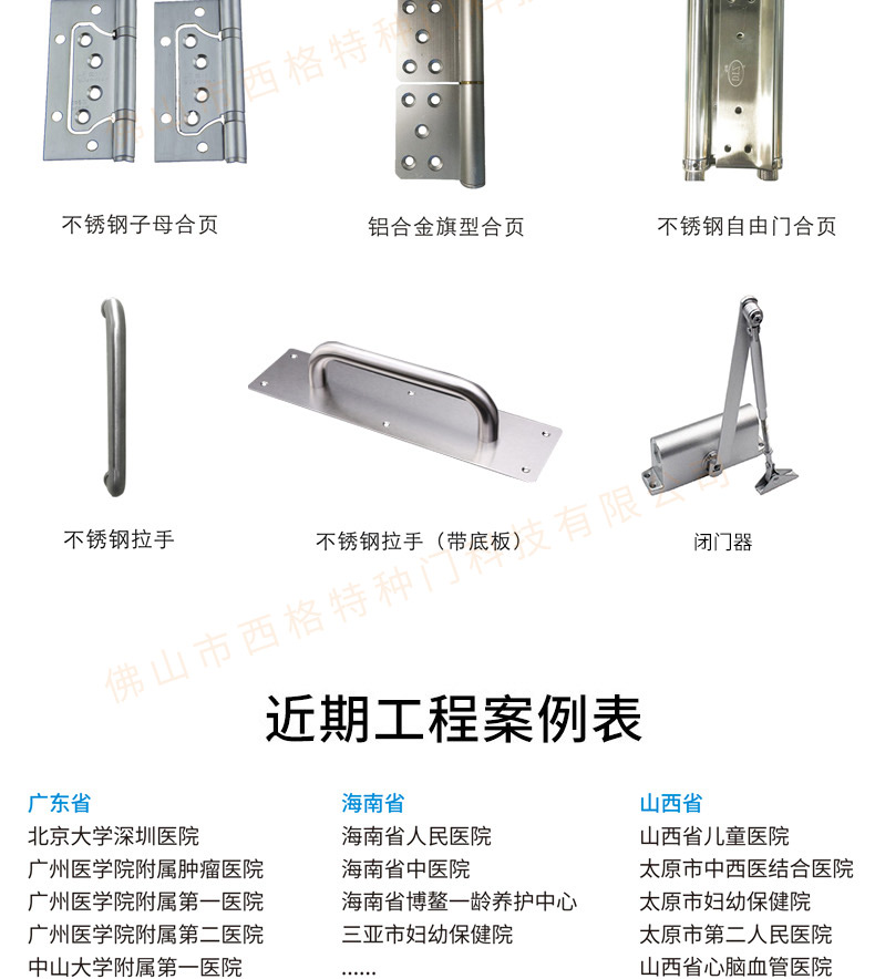 產品簡介:廣東西格醫院門生產廠家