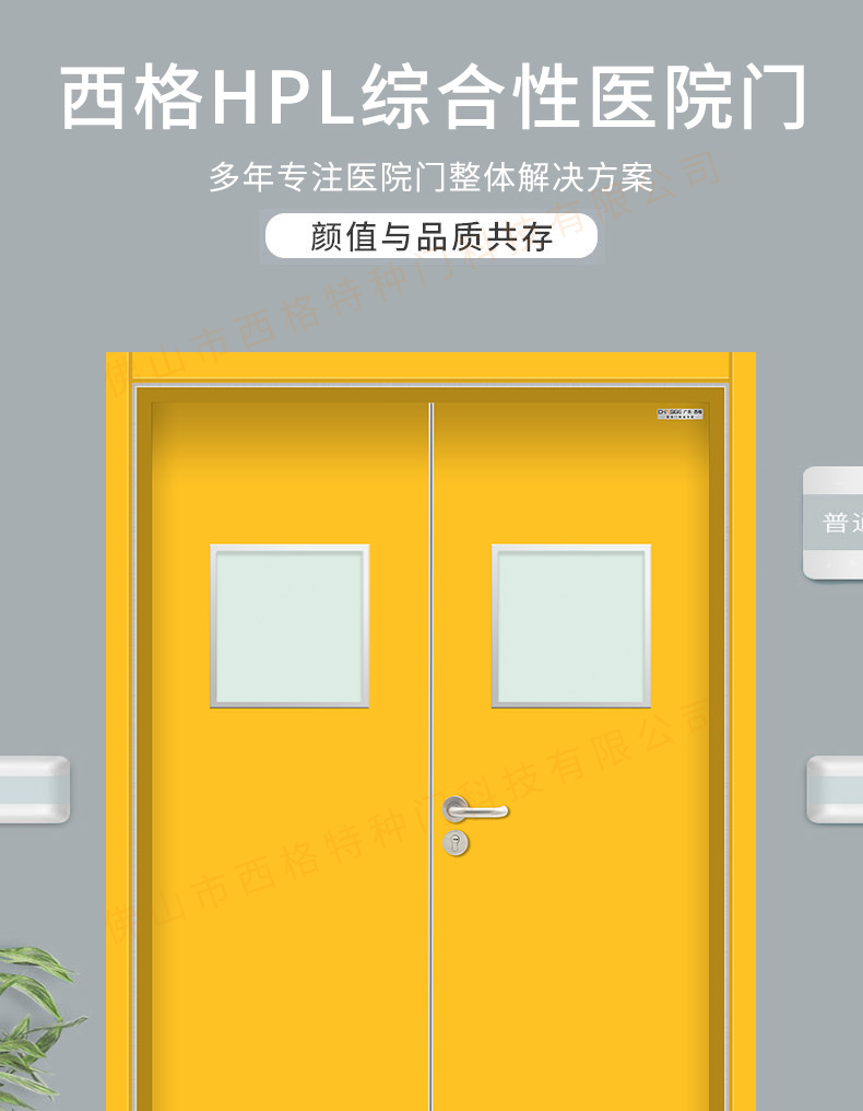產品簡介:chnsige西格特種門,專業生產醫院門,醫院診室門,醫院辦公室門,醫院衛生間門,木質醫院門,鋼質醫院門,多鐘款式、顏色,尺寸可定制。